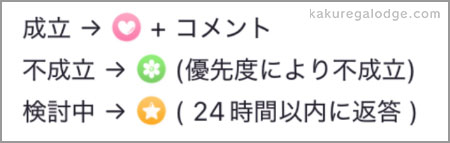 申し訳ありませんが、自分のレート感と条件が合わないため、お見送りとさせて下さい。