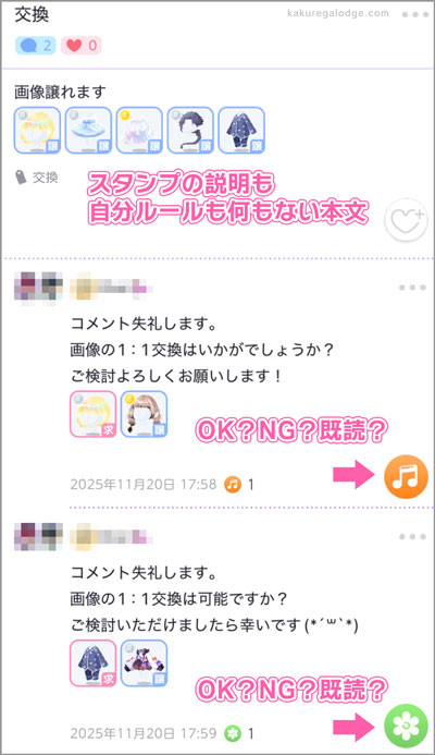 多くのプレイヤーは交換ノートで使うスタンプの意味を書いてくれています。