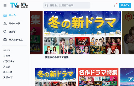TVerは民放各局が共同で運営する無料配信サービスです。