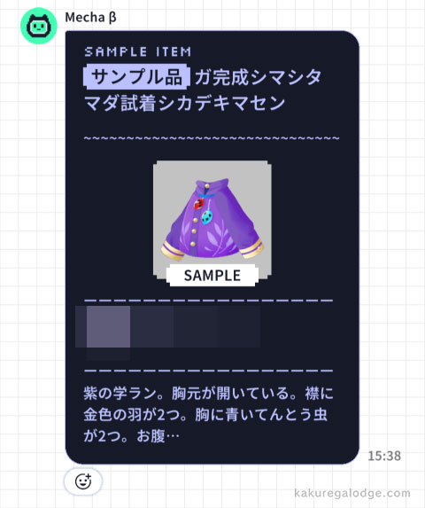 運営の巡回監視や通報により、完成したアイテムが削除される場合があります。