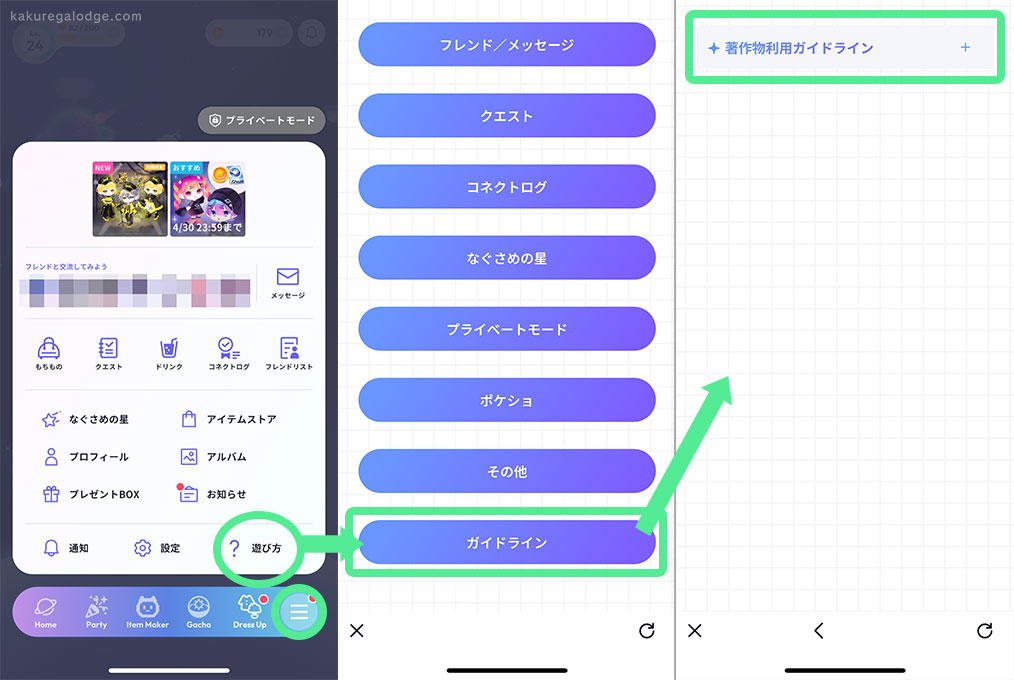 - 遊び方最下部の「ガイドライン」をタップ